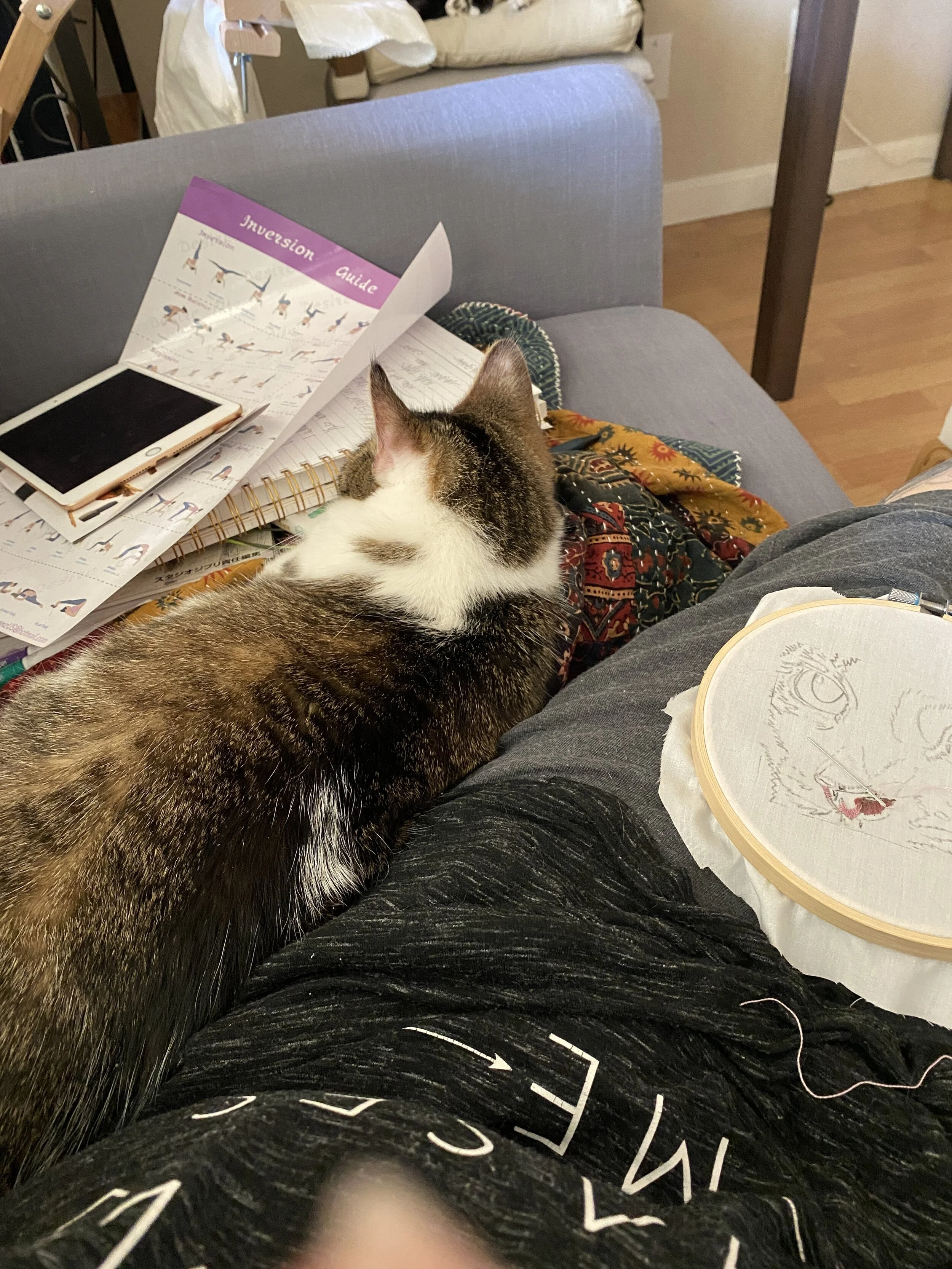 I need to clean up the room a bit, but I have a good amount of area to do some needle work, or whatever. I absolutely adore the area. Chiyo will come over and snuggle with me as I am watching YouTube and doing some needle paining. I secretly love it when she does that.