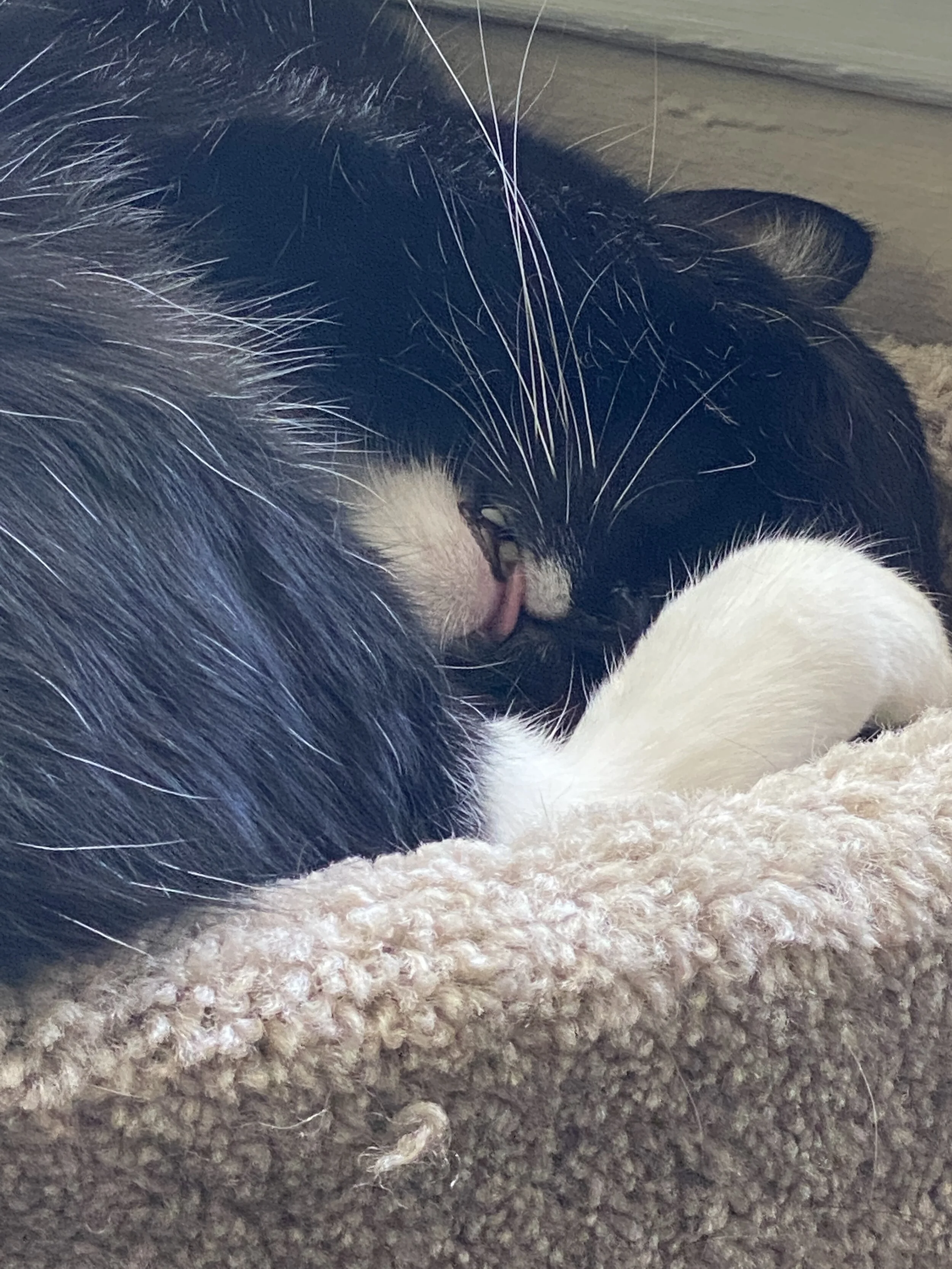 Husband has been sick often. I think it may have to do with the weather being so volatile. Plus, he does not get out much. He is pretty strict (very by-the-book type of person) about following Covid rules. He gets made when I speak to a person like a cashier without a plate glass between us. I totally get it. We wear masks and just try to get in and out of places quickly. Anyway, he sleeps a lot on the weekends and Chiyo is there to hold him down and make sure he is safe. She is his nurse. She takes her job seriously. It was so cute, because right before this picture, she had her chin rested like this, but facing forward looking at him. <3 so fucking cute.