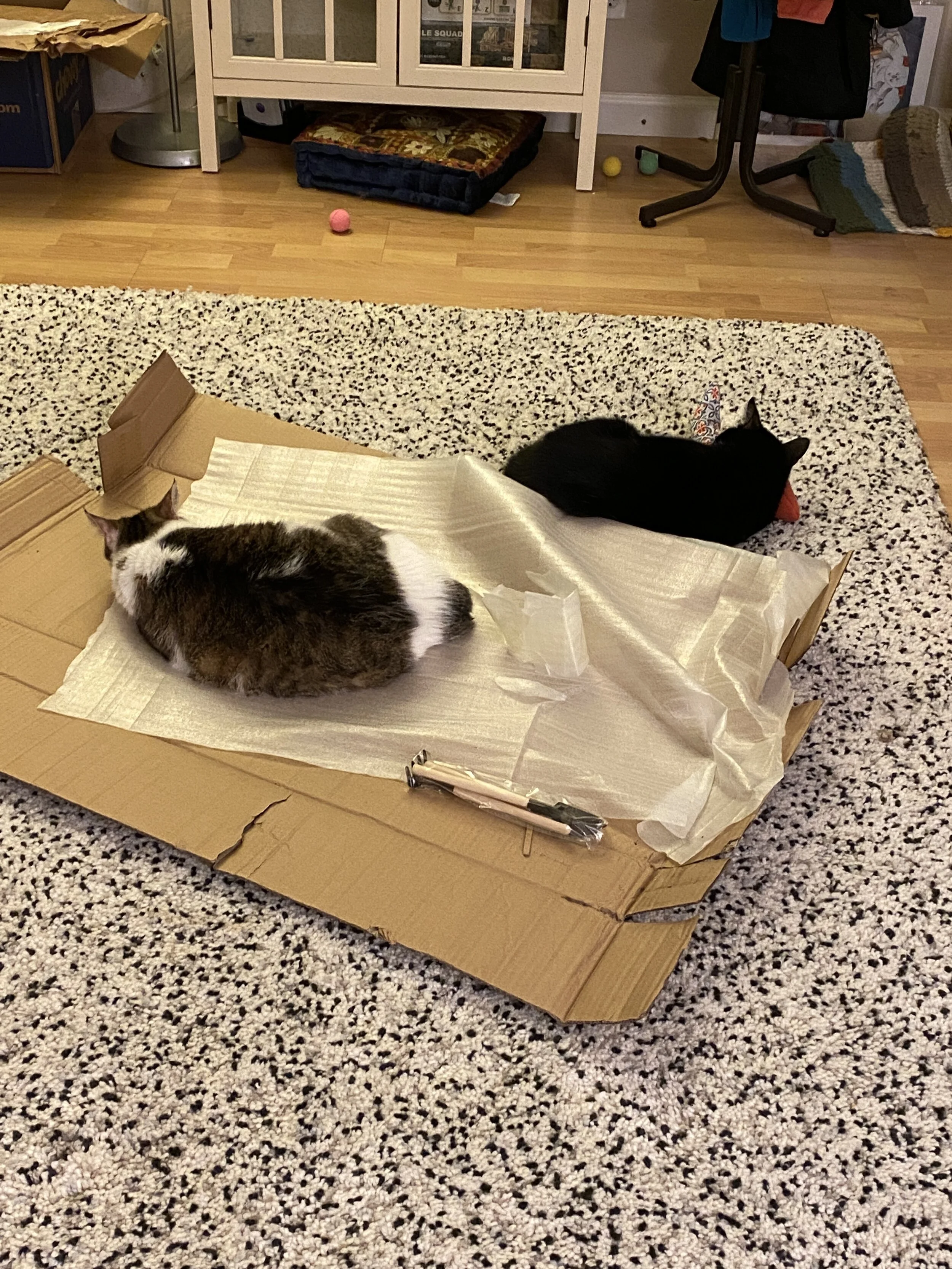 I got my outdoor plant stand and built it. The cats held the box down for me.