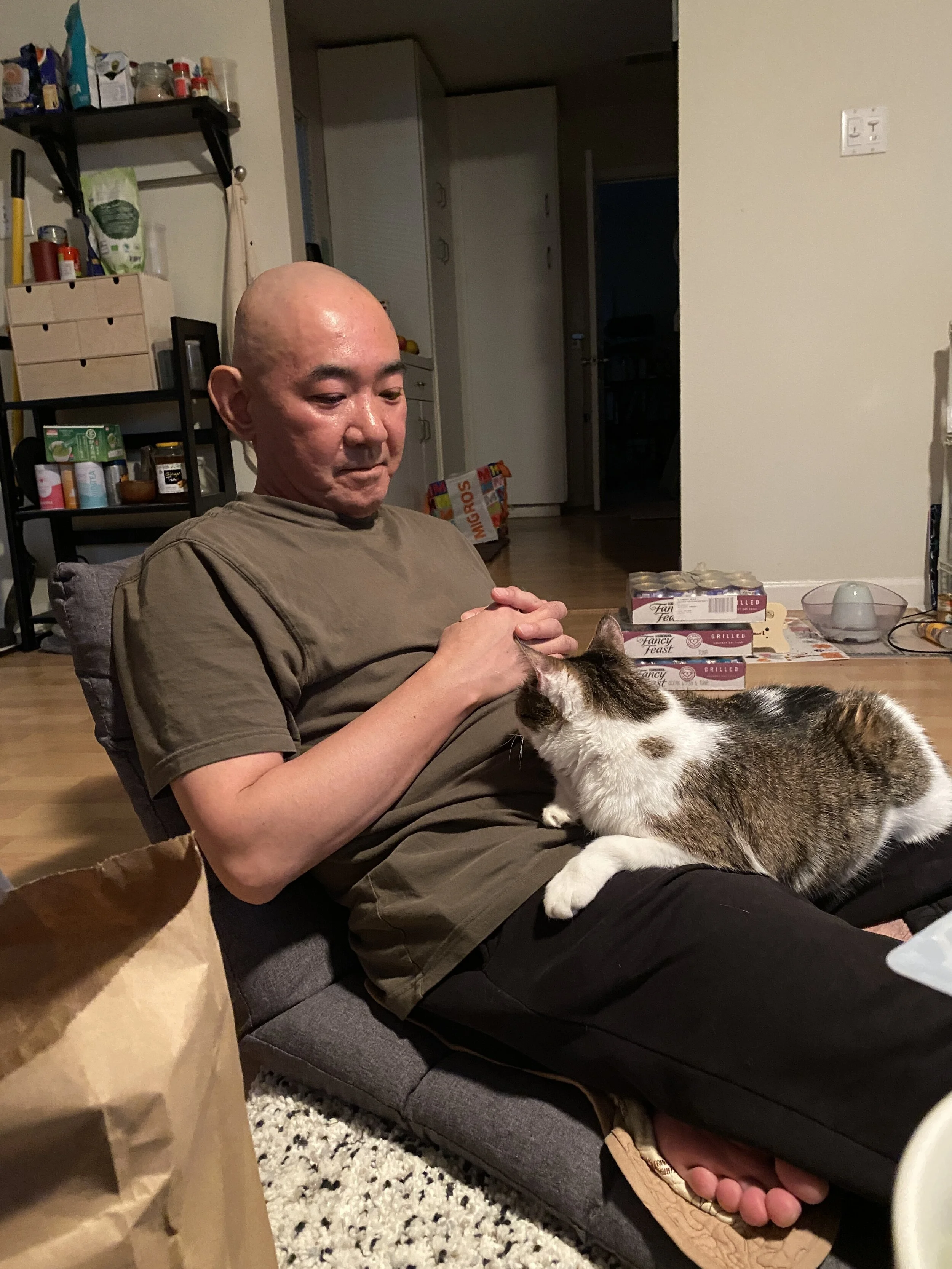 Aki took naps through the weekend and Chiyo keeps a very close eye on him.