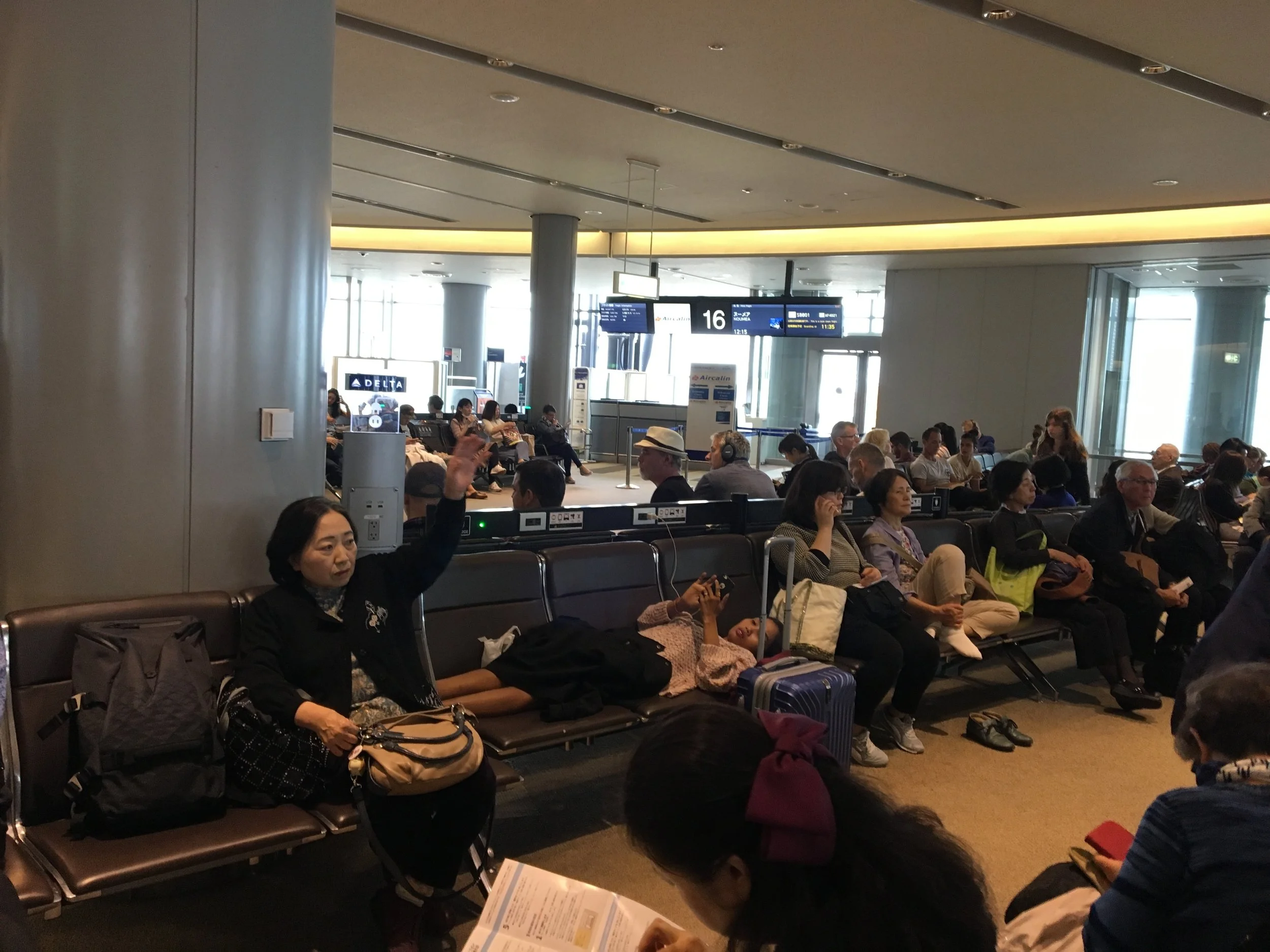 I got up to go to the bathroom before lining up for my flight, and when I got back I saw this when it was VERY crowded: