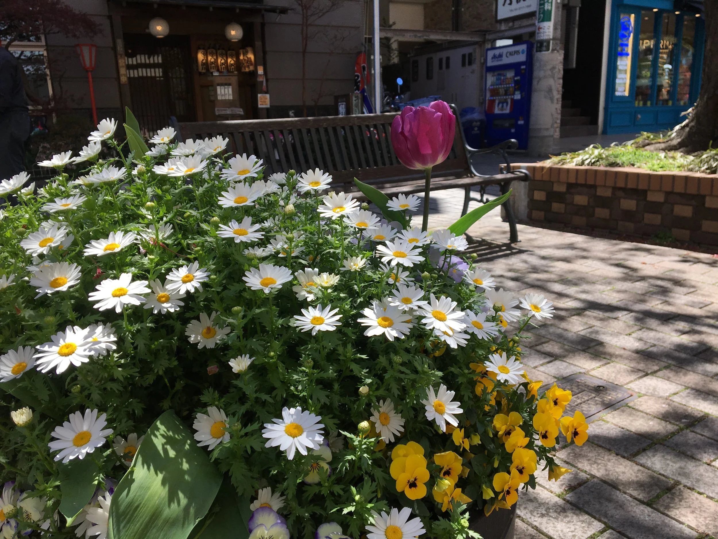 Had a little rest in the little middle divide of the street that is similar to Crocker Park in Ohio. Loved the little (or in this case, Monster Tulip) hanging out in the daisy bucket.